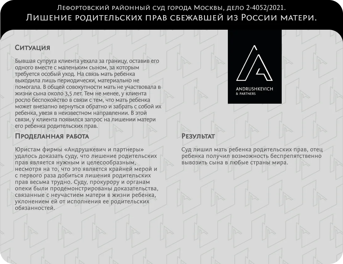 В нашей практике встречаются сложные случаи лишения родительских прав как отца, так и матери.